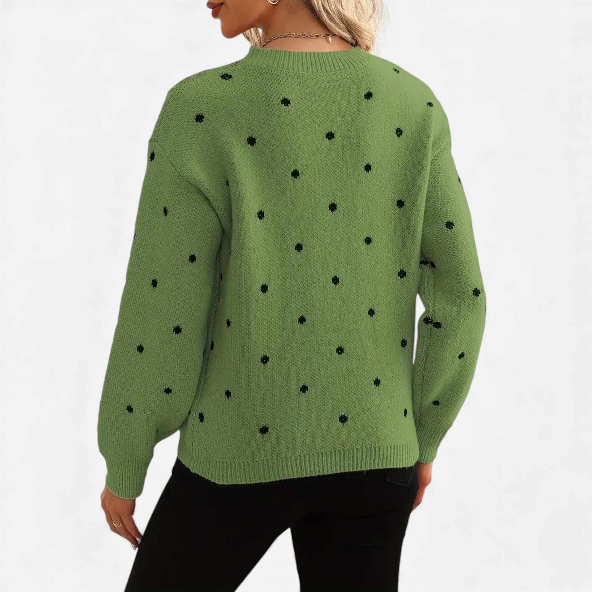 Just-Outlet | Women’s Sweater – Polka-Dot Crew-Neck Elegance